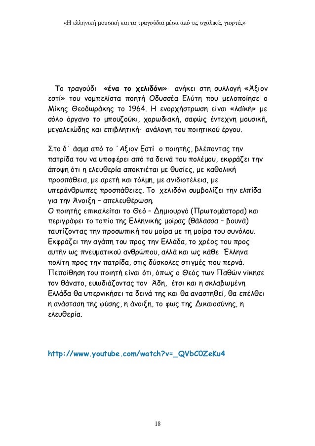 Θελει νεκρους χιλιαδες να ναι στους Τροχους. ε Το Άξιον Εστί είναι μια ποιητική σύνθεση που γράφτηκε από τον Οδυσσέα Ελύτη και κυκλοφόρησε το 1959. Odysseas Elytis Οδυσσέας Ελύτης Αλεπουδέλλης Άλλες εκτελέσεις.
