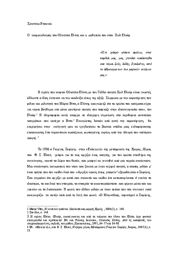 Pdf O Yperrealismos Toy Odyssea Elyth Kai H 8hteia Toy Ston Elyar Christina Dounia Academia Edu